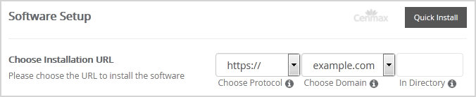 • Choose Installation URL: Choose the appropriate protocol/domain. Inside the "In Directory" field, should you want to install this in a directory, i.e., example.com/directory, enter the directory name. Otherwise, leave it blank to install in your main domain, i.e., example.com